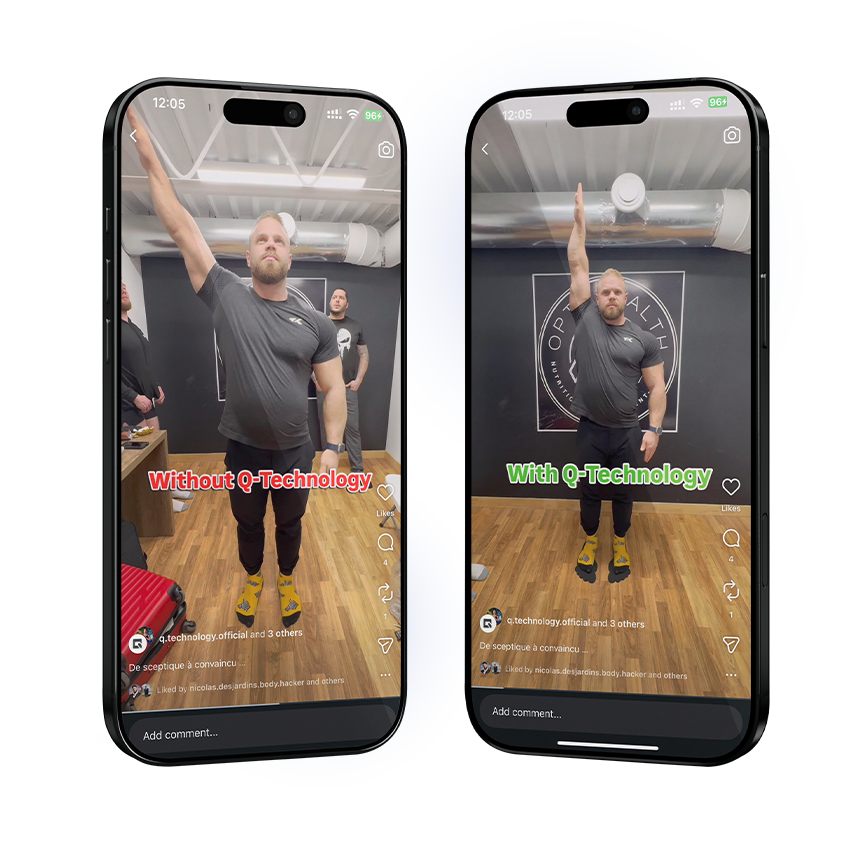 Presented at the Biohacking Summit 2025 and proven in the field, Q-Technology has established itself as a reference in neurosensory optimization and postural alignment. Built from applied biophysics and supported by rigorous, repeatable protocols, our technology produces observable postural improvements and rapid functional gains — stability, force expression, recovery — often visible in a standardized 2-minute demonstration. Our proof-first approach ensures your audience can see and feel the difference immediately, before any commitment.